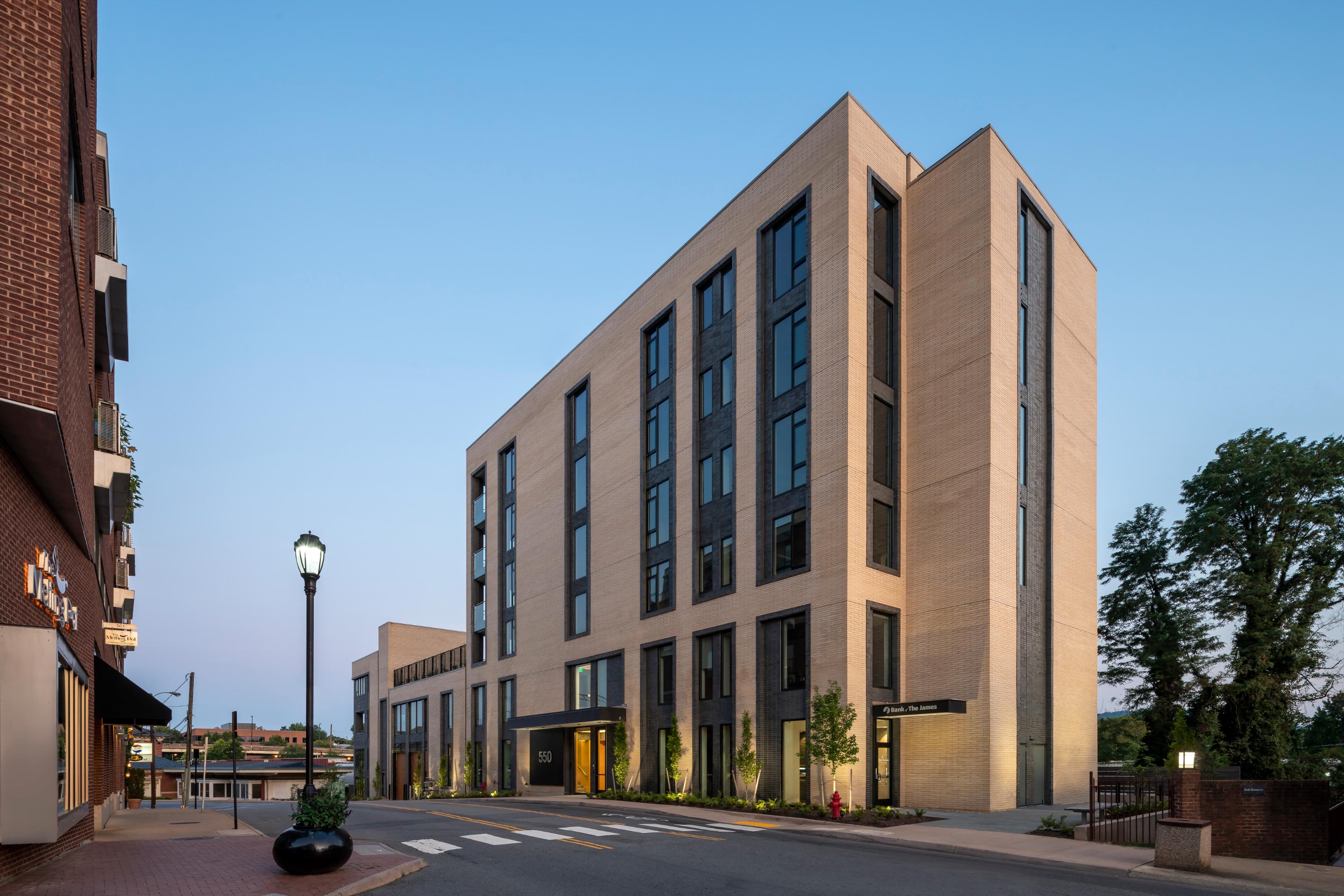 The 550 building is sited on a “flatiron” parcel on the southeast corner of Charlottesville’s downtown district. Office and retail tenants occupy street and second-floor levels. Full-floor residences with large outdoor spaces are situated above. While distinctly modern, the building honors the architectural language of industrial and warehouse buildings typical along the active railroad line.